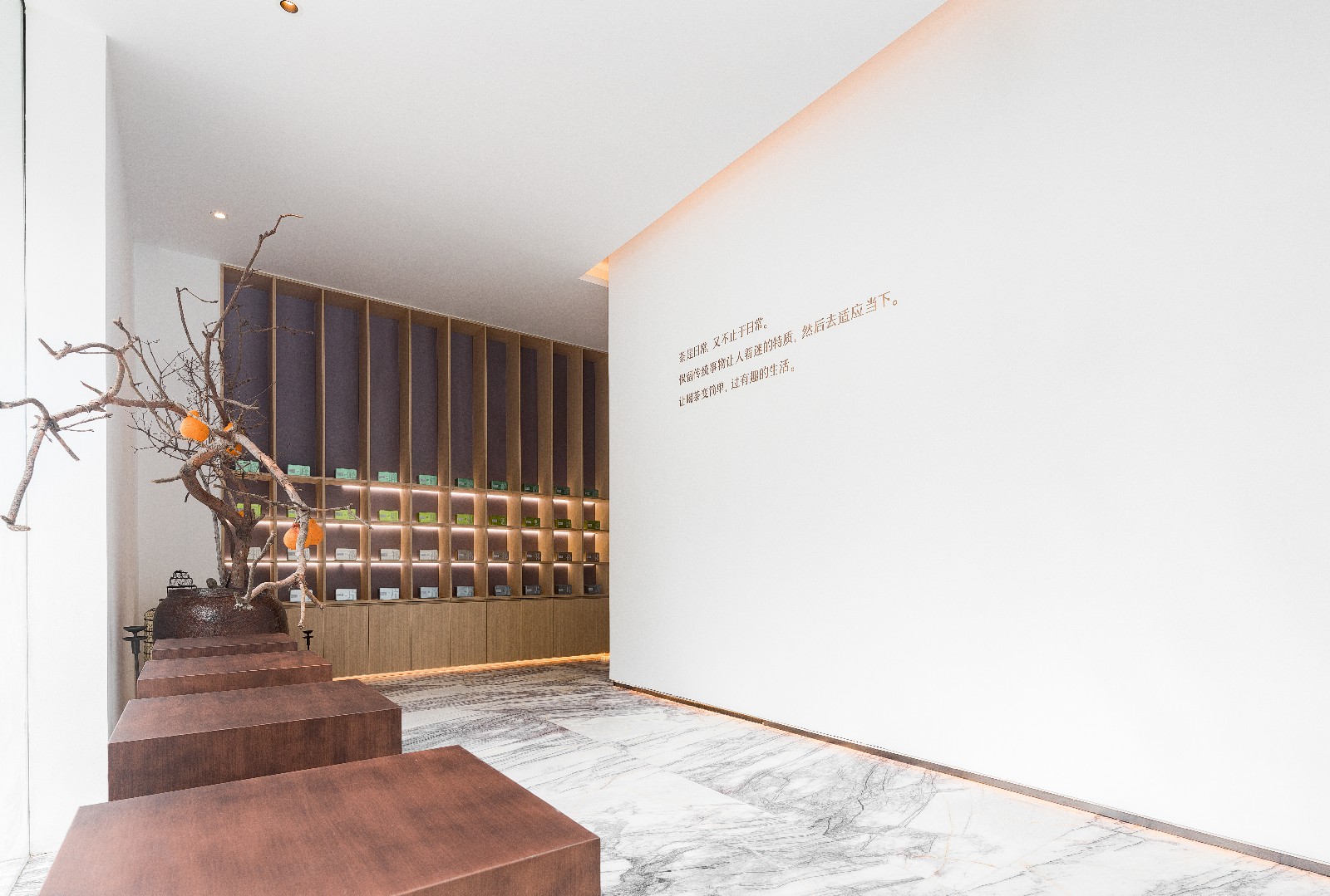 茗品行茶空間主推以峰、魁、祁、片四類徽茶為主的特色產品。企圖尋找一個以茶命名,回歸本質之美,自然、恬靜、和諧的茶室空間,并喚醒人們對品質生活的追求。