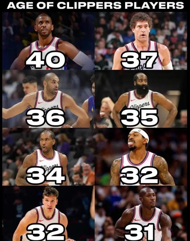 直播吧07月24日訊 快船今夏引進(jìn)多位強(qiáng)援,但年齡是他們的一大擔(dān)憂,目前快船陣中,有實(shí)力打進(jìn)輪換陣容的11人里有8人年齡超過(guò)了30歲,其中更有4人是在35歲或以上,詳情: