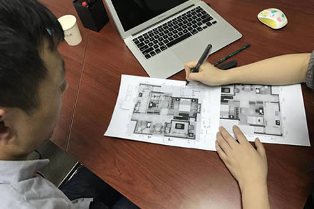 根據客戶的需求,設計師制作家具配置方案