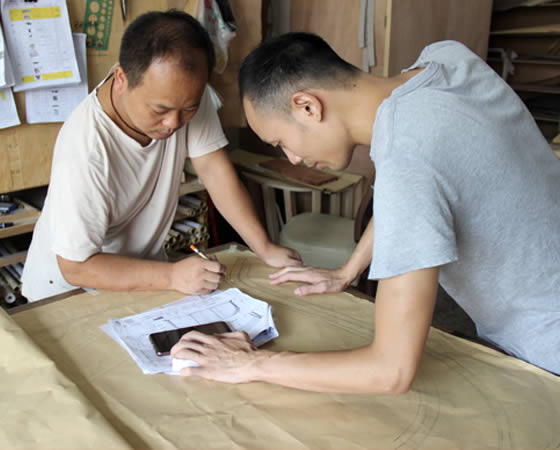 工藝設計師把圖紙、圖片及客戶的要求清晰對接給放樣技師,放樣技師根據設計提供的資料放1:1的產品生產模板,并整理出產品的所需物料清單。
